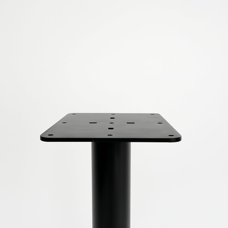 Конструкция изготовлена из прочной стали, что обеспечивает надёжность и долговечность при ежедневной эксплуатации. Основание диаметром 46 см и вес 10 кг создают устойчивую опору, а центральная стойка диаметром 76 мм гарантирует прочность конструкции и стабильность столешницы.