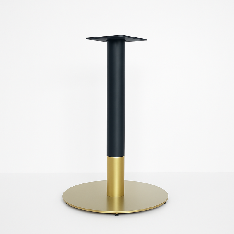 Подстолье R-Flat Gold — стильная металлическая опора для стола с премиальным золотым покрытием, которая сочетает современный дизайн, устойчивость и практичность. Лаконичная форма и элегантный внешний вид делают модель отличным решением для кафе, ресторанов, баров, гостиниц и домашних интерьеров.